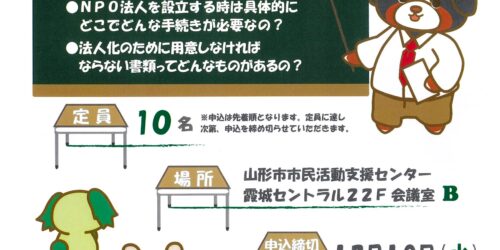 2025年11月17日 NPO勉強会~NPO法人設立編~ 山形市市民活動支援センターより【NPO勉強会~NPO法人設立編~】のお知らせです。 これからNPO法人を設立したい、また... カテゴリー NPO支援事業/アミルからのお知らせ