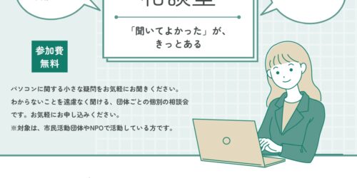 2025年11月17日 市民活動のためのパソコン相談室(個別相談会) 山形市市民活動支援センターより【市民活動のためのパソコン相談室(個別相談会)】のお知らせです。 「聞いてよかった」が、き... カテゴリー NPO支援事業/アミルからのお知らせ