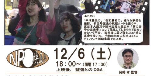 2025年11月11日 NPO映画塾 ~ドキュメンタリー映画で考える社会課題~ 山形市市民活動支援センターより「NPO映画塾 ~ドキュメンタリー映画で考える社会課題~」のお知らせです。 震災の記憶を次... カテゴリー アミルからのお知らせ/事務局通信