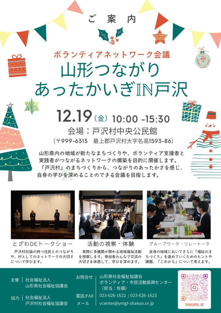 社会福祉法人 山形県社会福祉協議会より「山形つながりあったかいぎIN戸沢」のお知らせです。