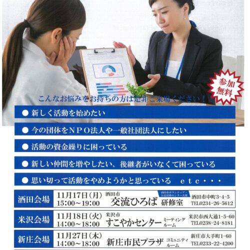 特定非営利活動法人 やまがた絆の架け橋ネットワークより「NPO・市民活動なんでも相談会」のお知らせです。 今さら聞けない...